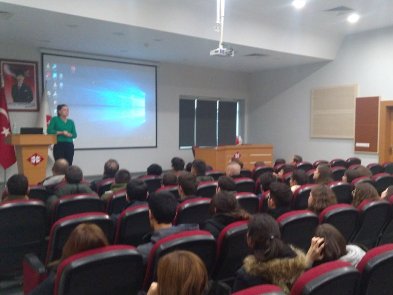 İzmir Özel Mektebim Anadolu Lisesi üniversitemizi ziyaret etmiştir. Elektrik Elektronik Mühendisliğinden Araş.Gör.Begüm Cangöz’den ve Hukuk Fakültesinden Araş.Gör. Emre Yolcu’dan bilgi almışlardır.(30 Mart 2018)