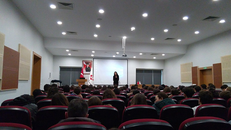 75. Yıl Lisesinde Psikoloji Bölümünden Yrd. Doç. Dr. Dilay Eldoğan ve Hukuk Fakültesinden Araş. Gör. Bersun Sarıgül ile üniversitemiz ve bölüm tanıtımlarını gerçekleştirdik.(27 Mart 2018)