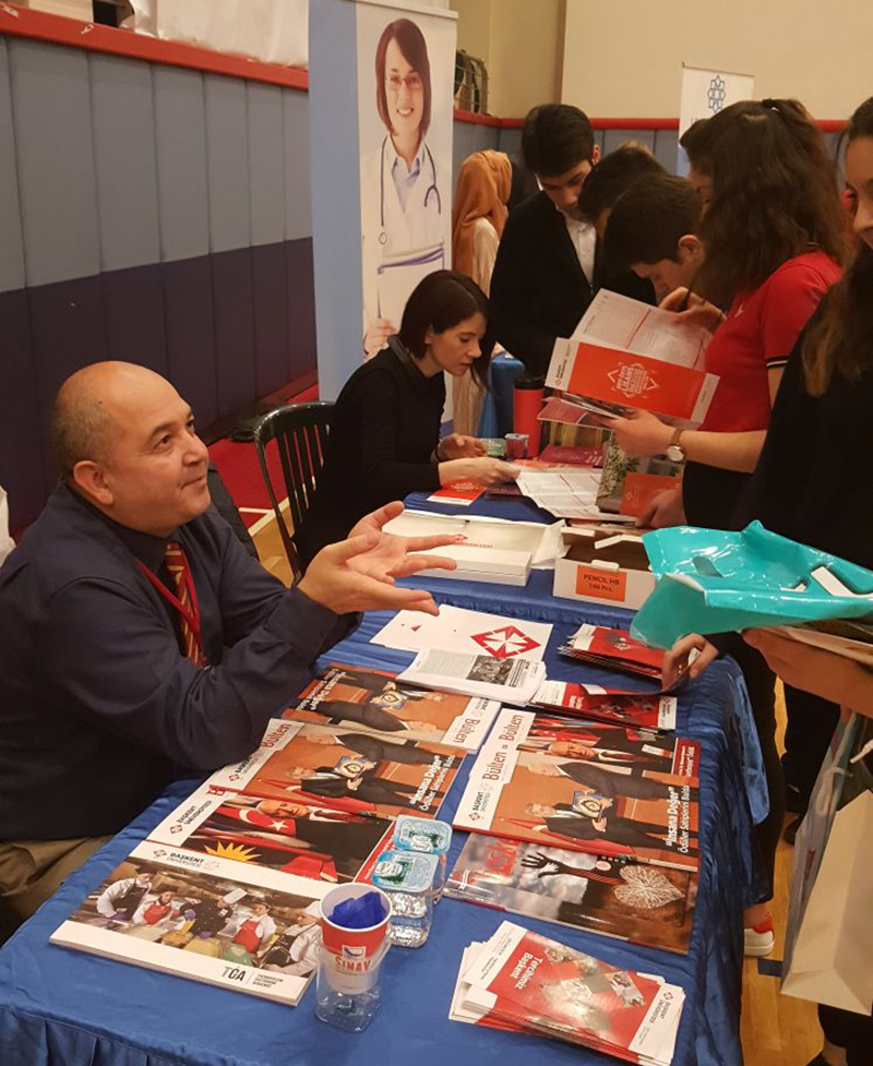 Gazi Vakfı Koleji'nde düzenlenen üniversite tanıtım günleri etkinligine katılmış bulunmaktayız. Etkinlik kapsamında aday öğrencilerin merak ettikleri sorular yanıtlanmış devaminda üniversitemiz ve imkanlarimız hakkında detaylı bilgilendirme yapılmıştır.(30 Mart 2018)
