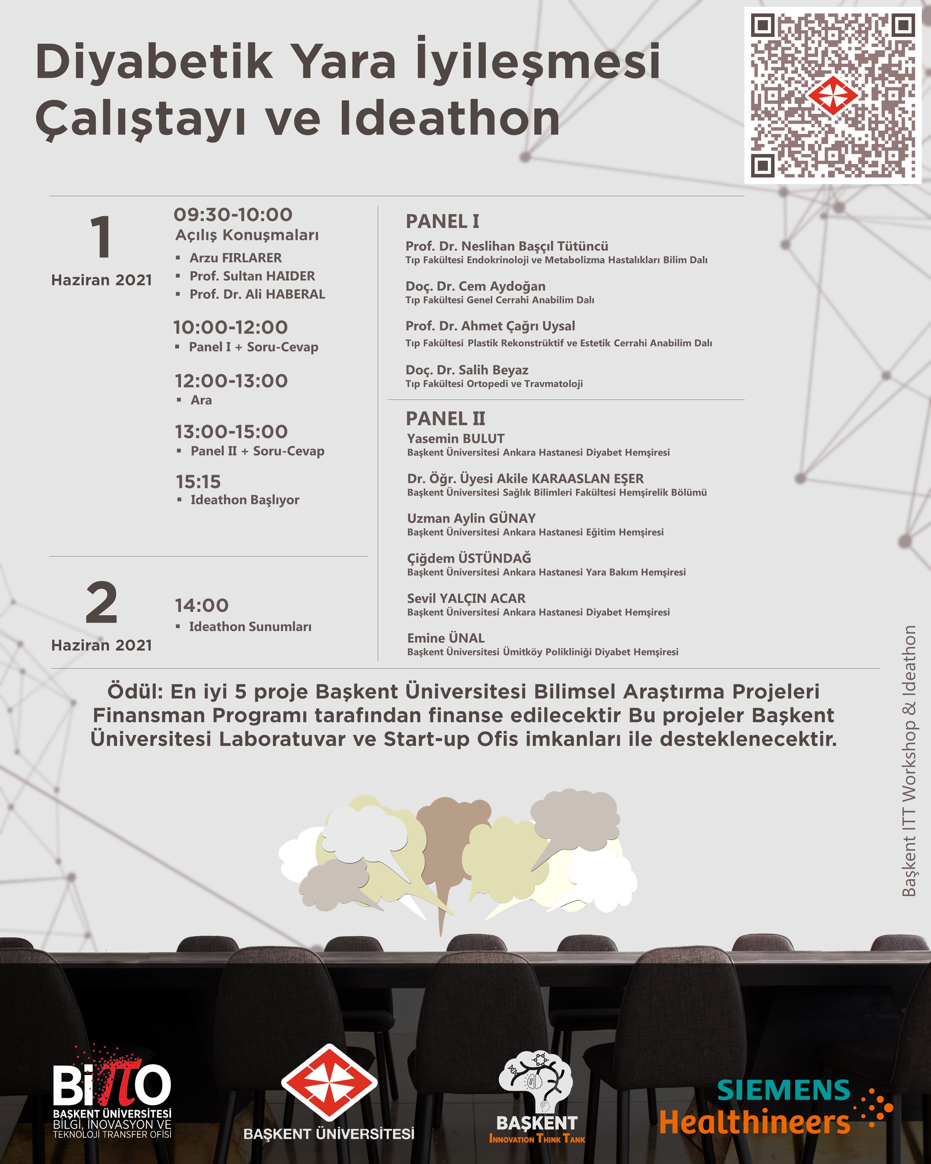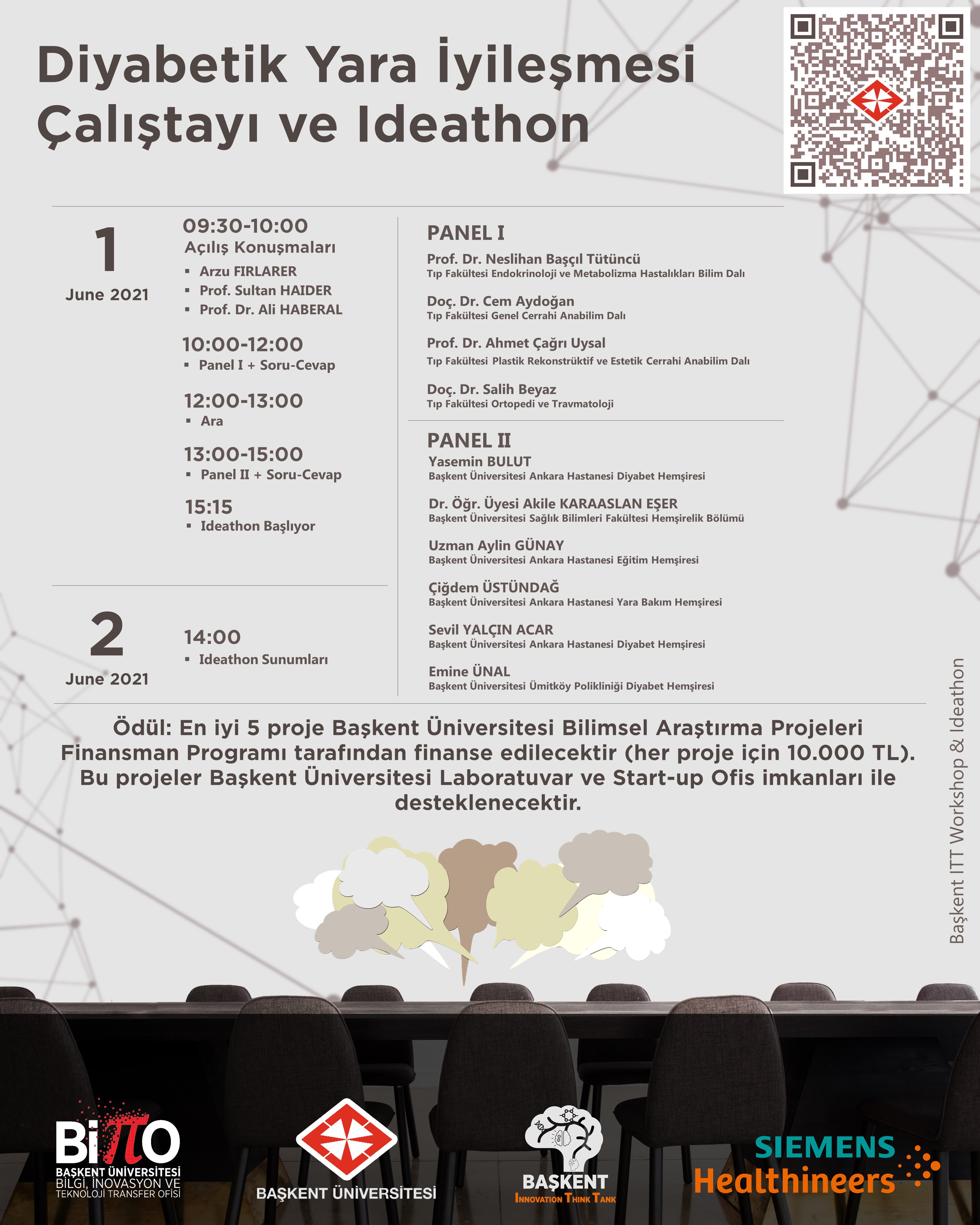 1-2 Haziran 2021 tarihlerinde gerçekleşecek çalıştay kapsamında Başkent Üniversitesi hekimleri ve hemşirelerinin Diyabetik Yara İyileşmesi yolaklarında karşılaşılan sorunlar hakkında sunumları gerçekleşecektir.