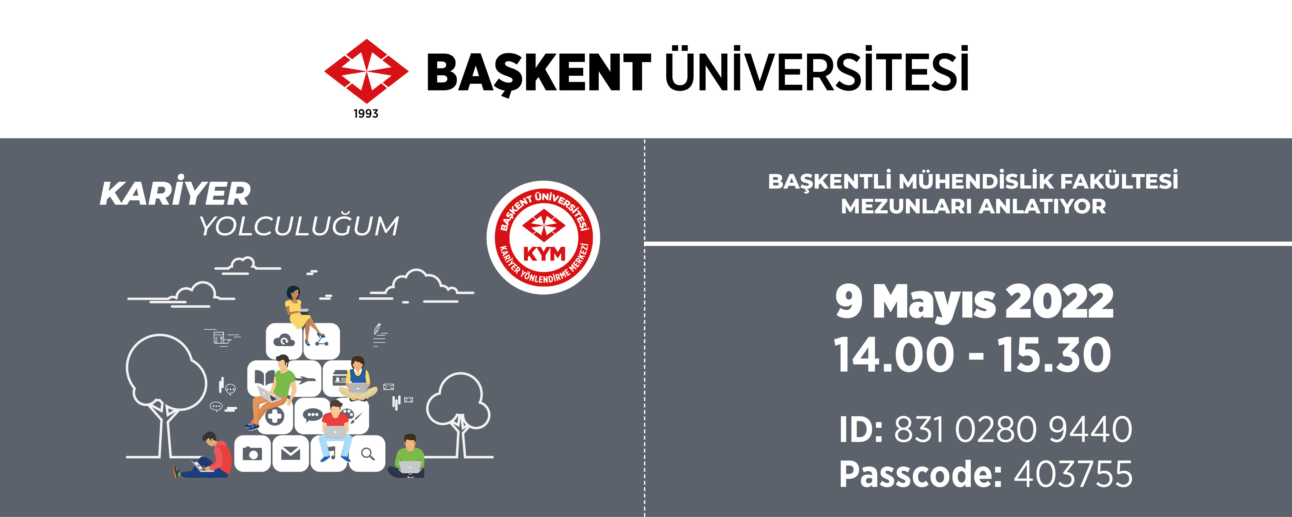 2021-2022 Eğitim öğretim yılı Kariyer Yönlendirme Merkezi etkinlikleri çerçevesinde öğrencilerimizi mezuniyet sonrası iş dünyasına hazırlamak, alanlarına yönelik sektörler hakkında bilgi sahibi olmalarını sağlamak amacıyla mezunlarımızı, iş deneyimleri ve başarı hikayelerini öğrencilerimizle paylaşmaları için seminer dizimize davet ediyoruz. Bu kapsamda Kariyer Yolculuğum "Başkentli Mezunlar Anlatıyor" konulu seminer programının on dördüncüsü olan "Başkentli Mühendislik Fakültesi Mezunları Anlatıyor" 9 Mayıs 2022 tarihinde 14:00-15:30 saatleri arasında online platform https://zoom.us/ üzerinden siz değerli öğrencilerimiz ve mezunlarımızla buluşuyor.
