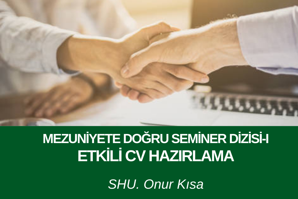 02 ARALIK 2021 20.00 - 22.00 Mezuniyete Doğru Seminer Dizisi-I: Etkili CV HazırlamaSosyal Hizmet Bölümü tarafından 2 Aralık 2021 Saat 20.00'da çevrimiçi düzenlenecek olan Etkili CV Hazırlama konulu seminere davetlisiniz. |