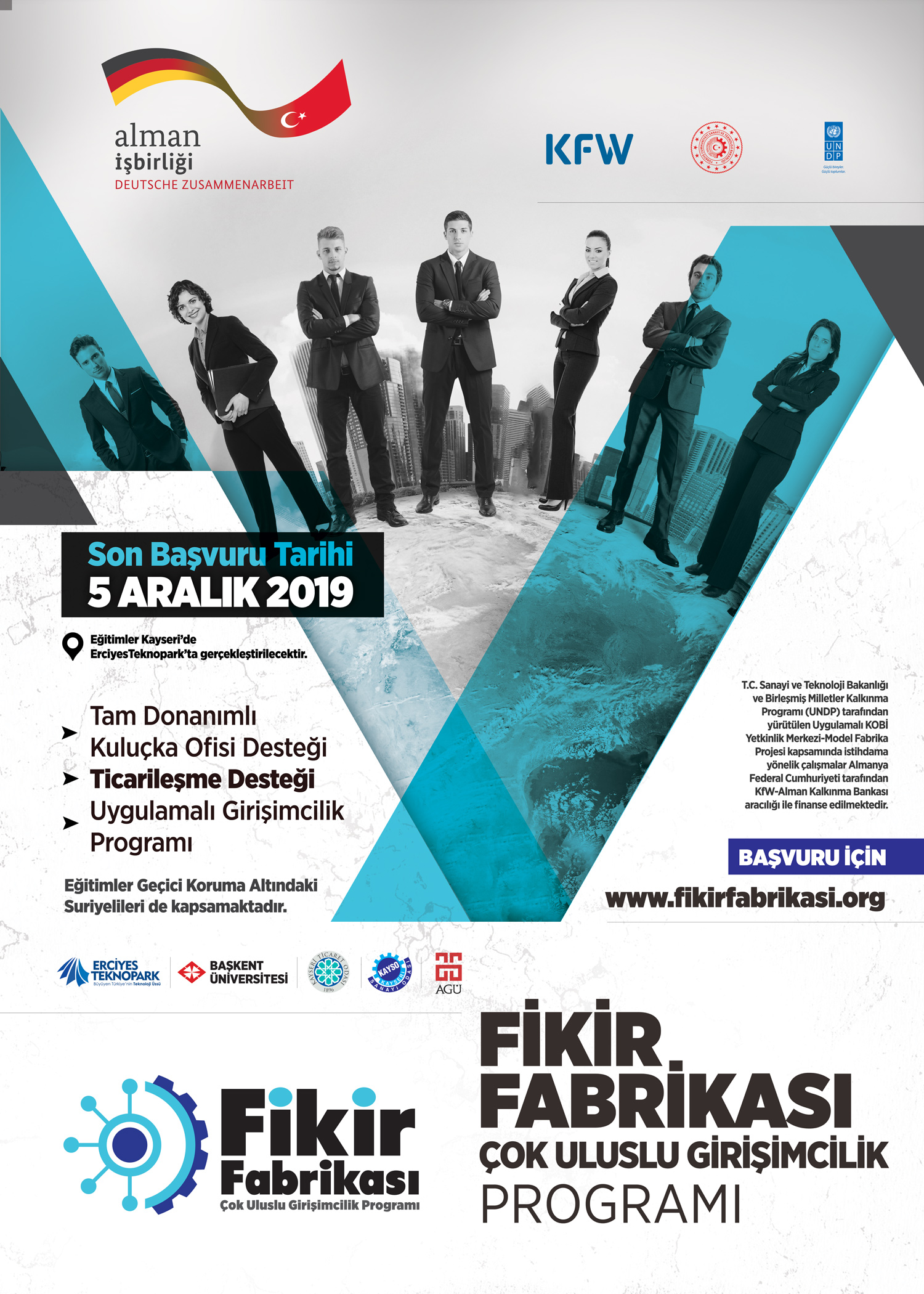 Alman Kalkınma Bankası’nın finanse ettiği ve UNDP projesi olan “Çok Uluslu Girişimcilik Projesi”nin ilk bölümü olan “Fikir Fabrikası” 9 Aralık 2019 Pazartesi Kayseri’de Başkent Üniversitesi tarafından başlatılıyor. Proje koordinatörlüğünü Prof.Dr. Ali Halıcı’nın yürüttüğü süreçte, Kayseri’de 200 ve Konya’da 200 geçici koruma altındaki Suriye’lilere ve Türk vatandaşlarına Girişimcilik Eğitimleri verilerek proje üretmeleri sağlanacaktır. Projede yaklaşık 20 öğretim elemanı görev yapmakta olup 6 ay içinde bitirilmesi planlanmıştır.