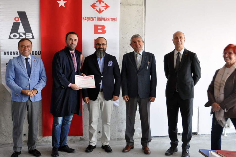 Başkent Üniversitesi Eğitim ve Danışmanlık Hizmetleri Merkezi ve Anadolu Organize Sanayi Bölgesi işbirliğinde gerçekleştirilen “İnsan Kaynakları” Eğitimi’nin ilki 28 Eylül 2018 tarihinde Üniversitemiz Rektör Yardımcısı Prof.Dr. Recep Tayfun, BEDAM Müdürü Prof.Dr. Ali Halıcı ve AOSB yetkililerinin katılımı ile gerçekleştirilen tören ile tamamlandı. Üniversitemiz AOSB Meslek Yüksekokulu’nda 17-28 Eylül 2018 tarihlerinde gerçekleştirilen eğitim sonrasında işbirliği çerçevesinde yeni eğitim konuları ile ilgili görüşmeler yapıldı.