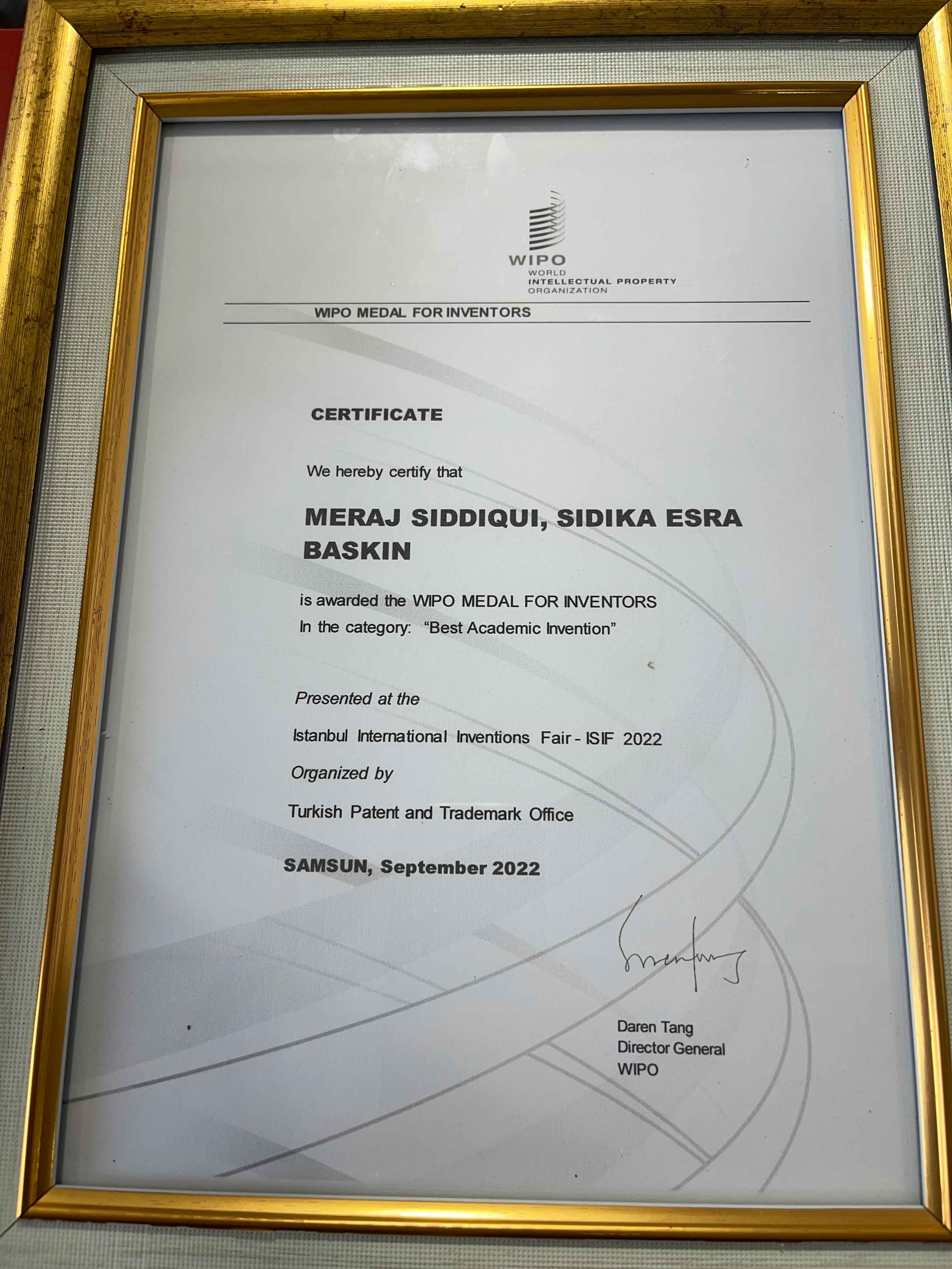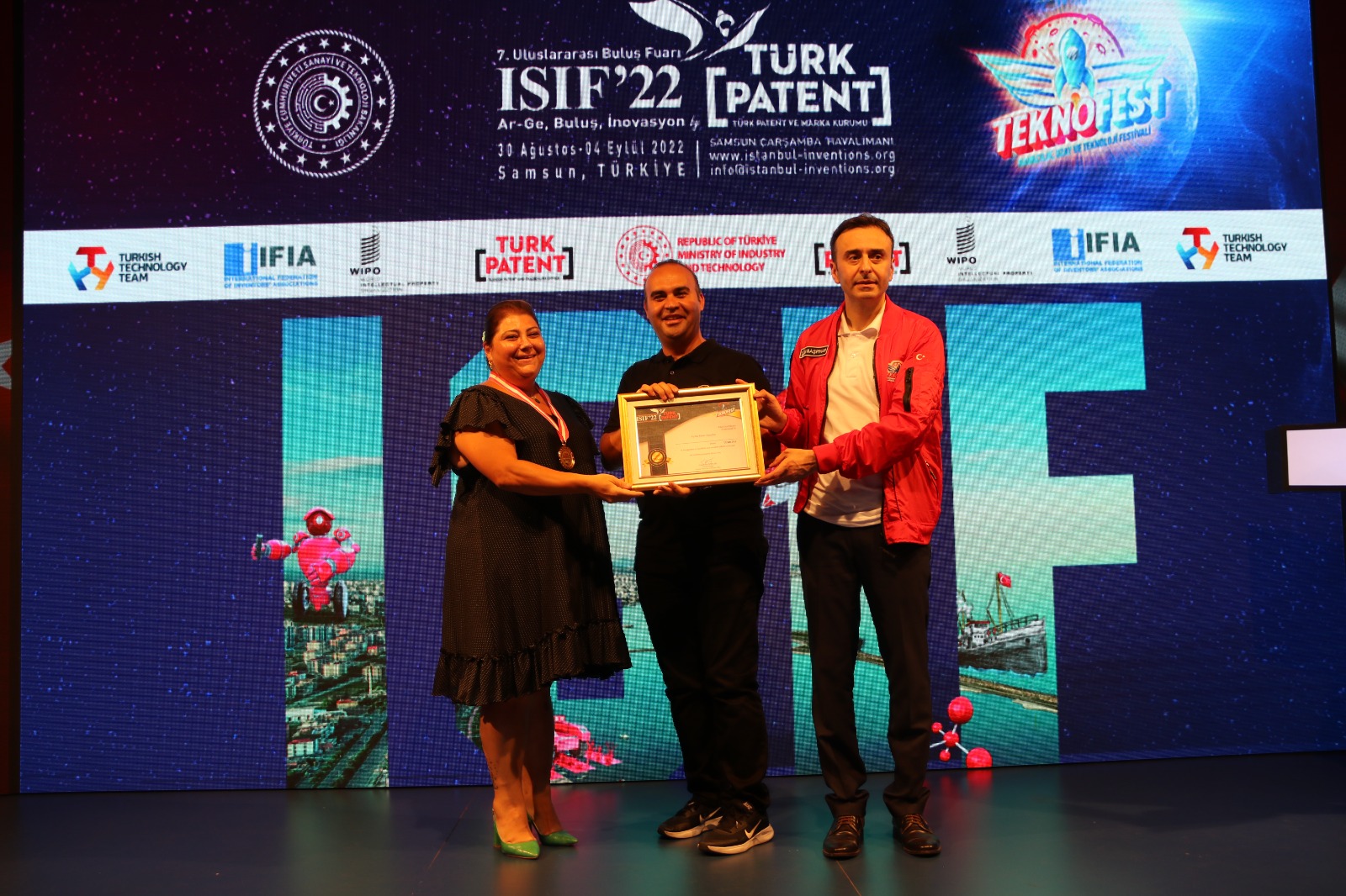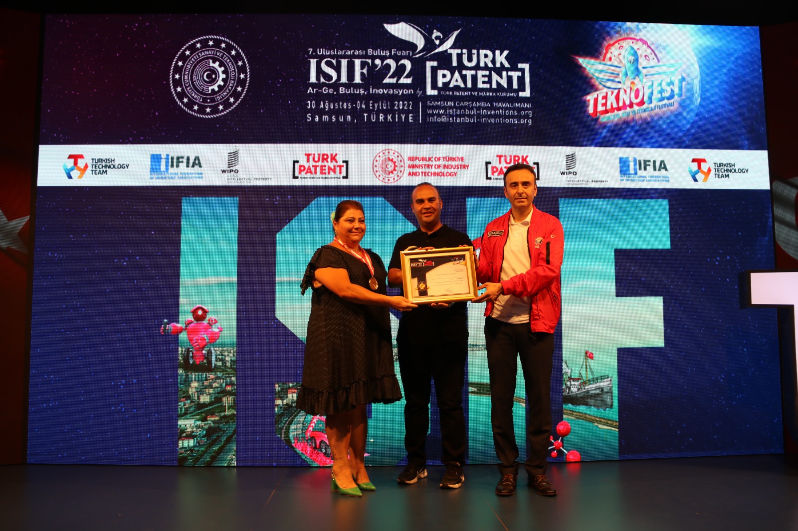 Bu yıl 13 ülke, 277 buluşun katıldığı ISIF’nda 6 patentimiz ödüllendirildi. WIPO Dünya Fikri Mülkiyet Teşkilatı Uluslararası İşbirliği Yöneticisi Sayın Zoran BARISIC, Sanayi ve Teknoloji Bakan Yardımcısı Sayın Fatih KACIR, Türk Patent ve Marka Kurumu Başkanı Sayın Cemil BAŞPINAR’dan ödüllerimizi aldık.