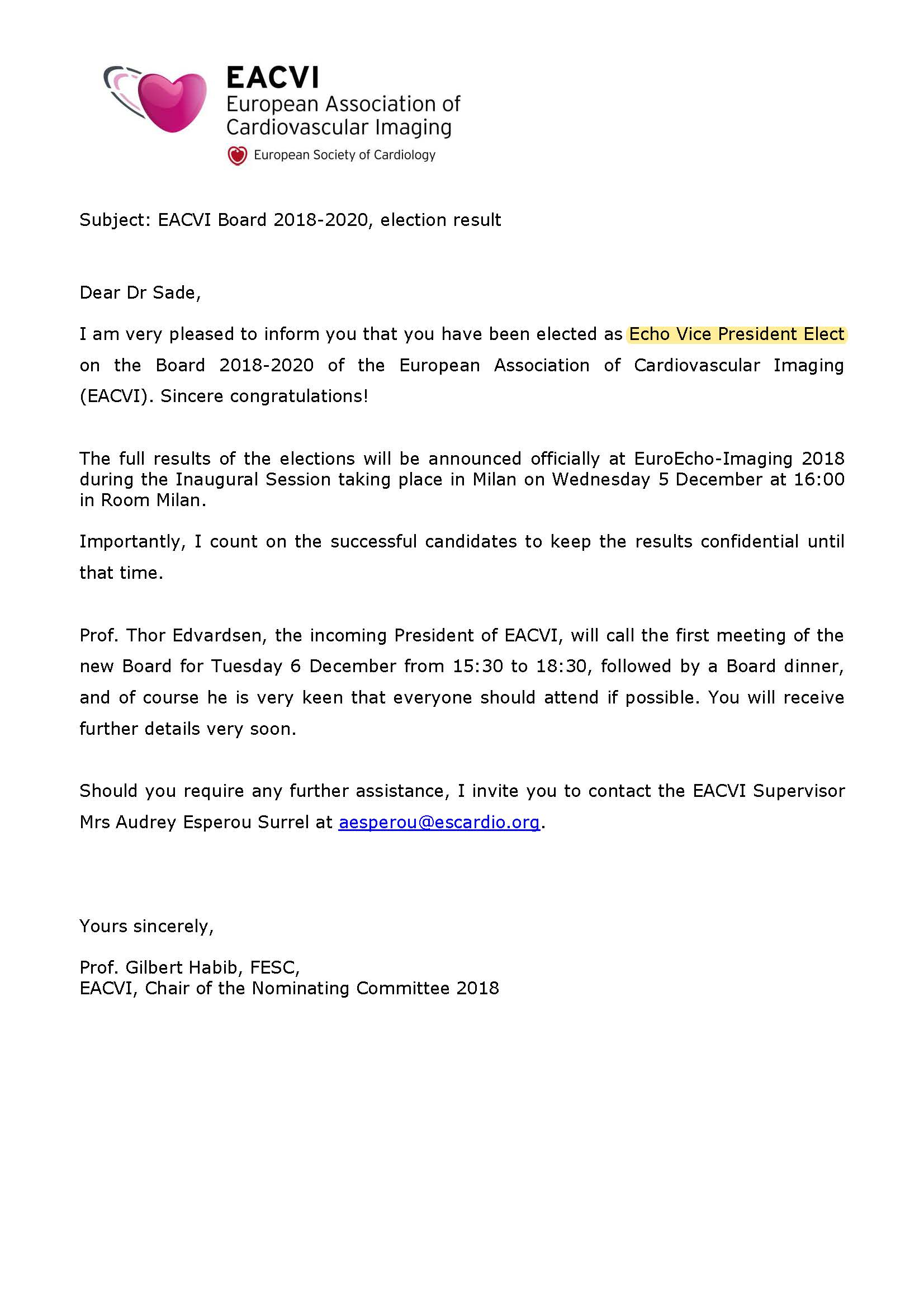 Bu gorev 4 yıl sürecek olup, 2018-2020 döneminde gelecek başkan yardımcılığı ve ardından 2020-2022 döneminde başkan yardımcılığı pozisyonunu kapsamaktadır.