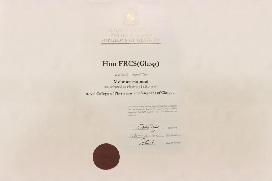 Üniversitemiz Kurucusu, Yönetim Üst Kurulu Başkanımız ve Dünya Organ Nakli Derneği Başkanı Prof. Dr. Mehmet Haberal, Türk Bayrağını tıp dünyasının zirvesinde dalgalandırdı. İskoçya'nın Glasgow kentindeki tören 5 Haziran 2019 Çarşamba günü 1599 yılında temeli atılan Glasgow Üniversitesinin tarihi binasında gerçekleştirildi. 1.500 kişinin katıldığı törende Glasgow Kraliyet Hekimler ve Cerrahlar Koleji, Prof. Dr. Haberal'a onursal üyelik takdim etti.