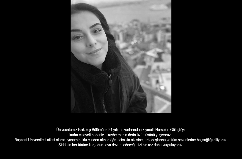 Başımız SağolsunÜniversitemiz Psikoloji Bölümü 2024 yılı mezunlarından kıymetli Nurselen Gülaçtı’yı kadın cinayeti nedeniyle kaybetmenin derin üzüntüsünü yaşıyoruz. Başkent Üniversitesi ailesi olarak, yaşam hakkı elinden alınan öğrencimizin ailesine, arkadaşlarına ve tüm sevenlerine başsağlığı diliyoruz. Şiddetin her... |